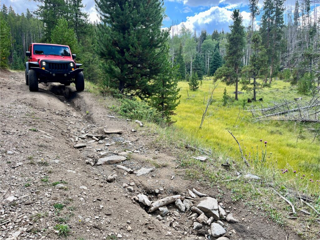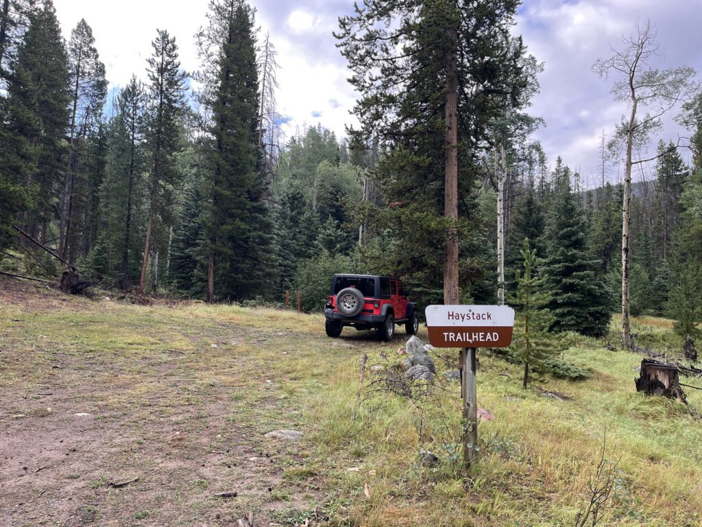 Haystack Mountain sits somewhat unassumingly east of Interstate-15 above the flat stretch of fields in Elk Park, about 25 miles northeast of Butte in the Beaverhead-Deerlodge National Forest (POTA US-4499). The drive to the trailhead (TH) took me about an hour. From Helena, drive south towards Butte then double back at the Elk Park exit on the frontage roads to NFR-1538. When the road turns uphill and away from the interstate I recommend only driving this in a 4-wheel drive, off-road capable vehicle. Parking near the interstate and hiking the road to the TH adds about a mile each way. There is a sign as you start up that warns, “narrow rough road,” and it is not joking. Erosion in some spots makes the driving somewhat technical but doable. Other sections are quite narrow as young lodgepole pines line the road fighting for space to grow.