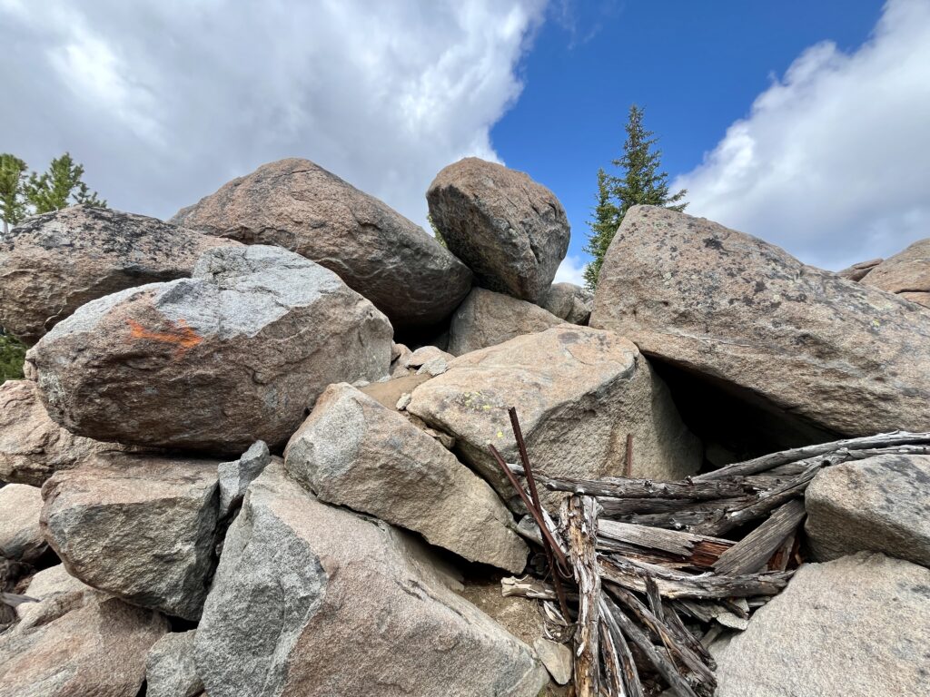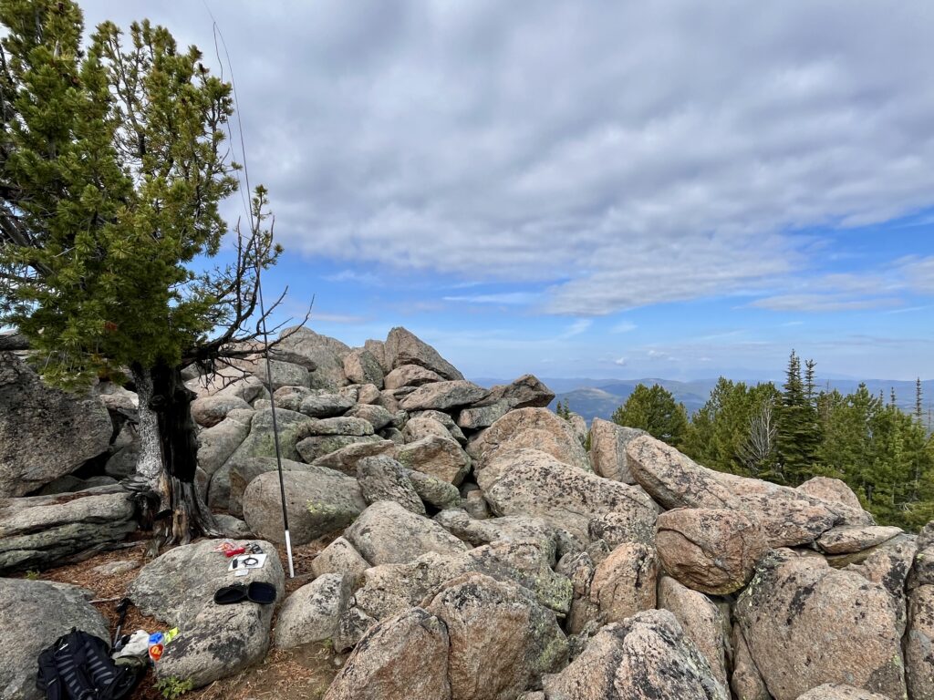 At the top I found the fire tower remnants. The decaying stairs are all that really remain along with the foundation anchors. In between the large boulders that comprise the summit it was littered with scraps of metal, glass, and beer can pull tabs. This would have been an amazing perch to monitor for forest fires back in the day. To the southwest you can just look down into Butte and you have an unobstructed panoramic for one hundred miles.